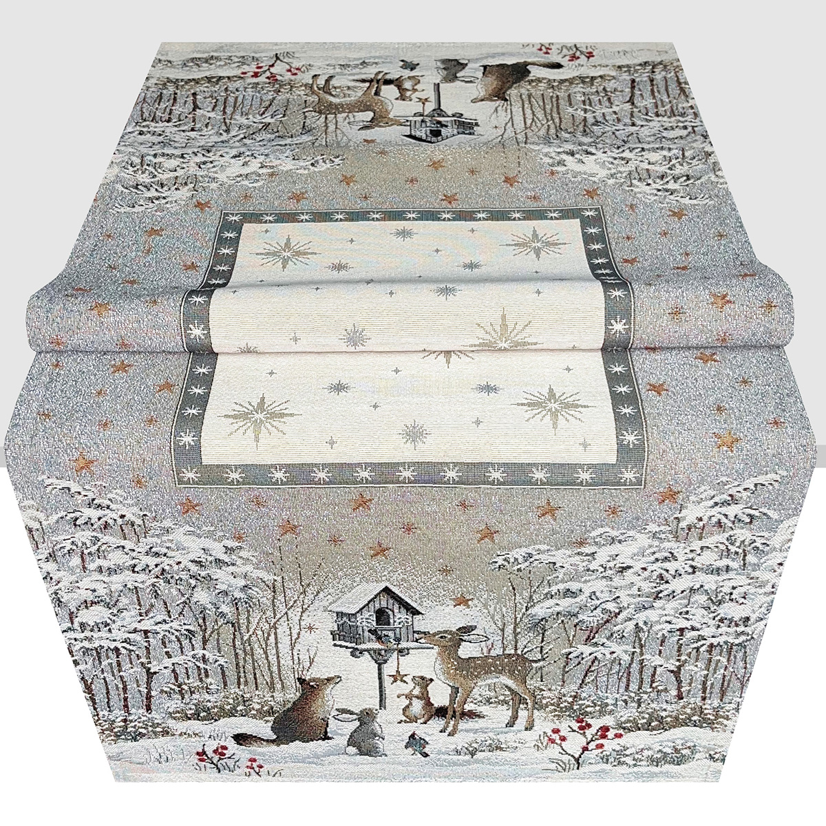 Bordløber med vintermotiv af skoven og dyrene. Bordløberen giver en hyggelig følelse af dyrene op til jul.