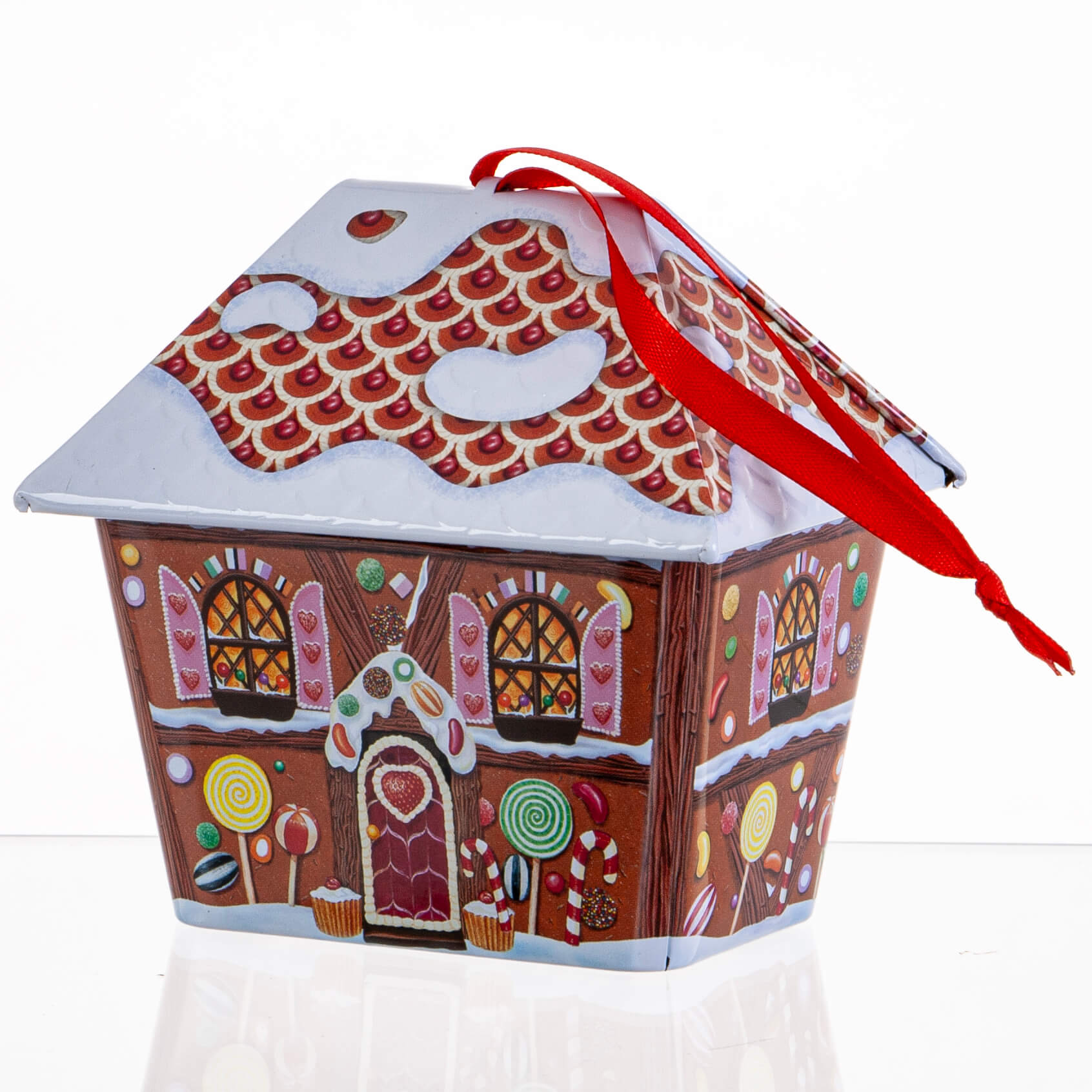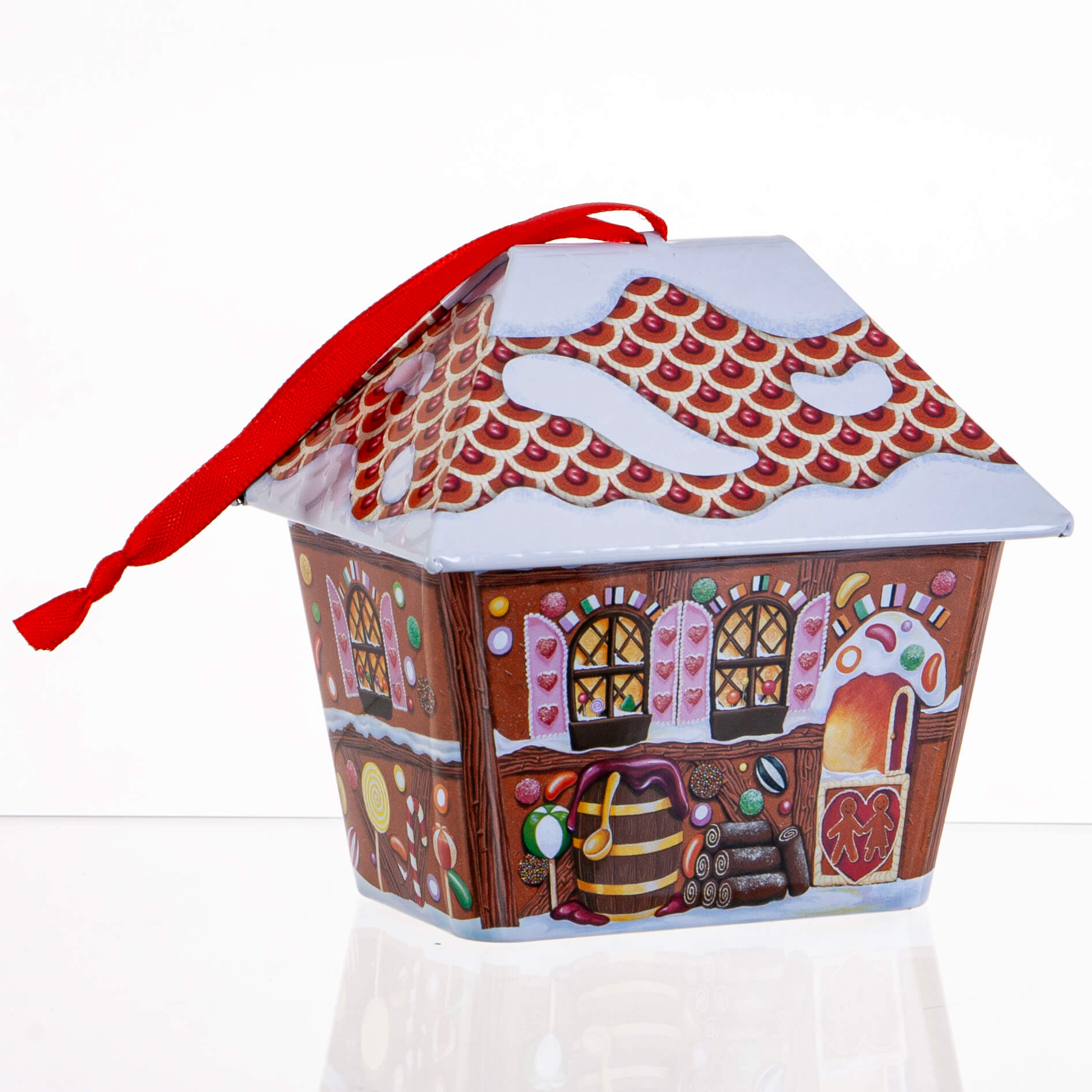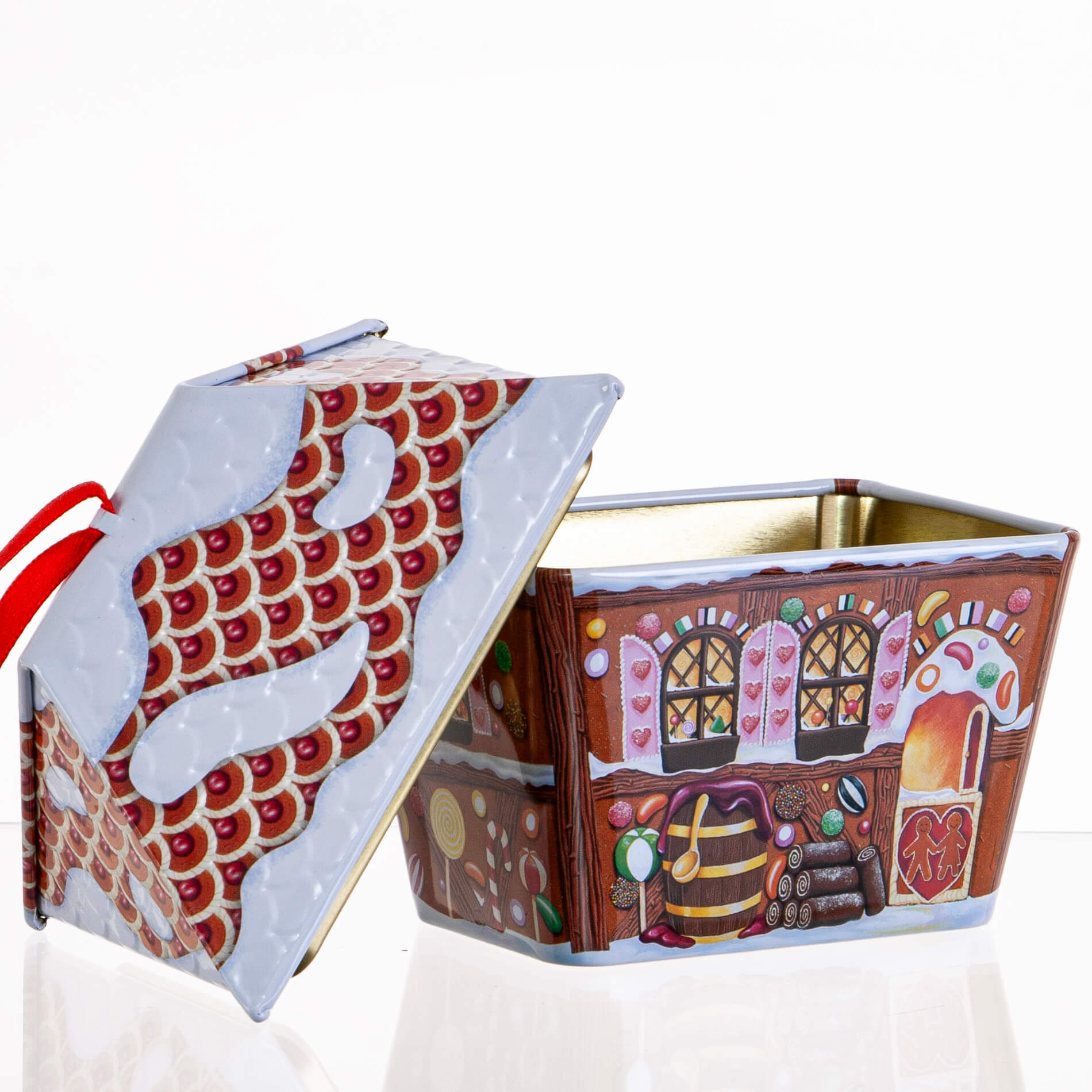 Kagedåse lille honningkagehus med bånd til ophængning. Sød at opbevare julens godter, slik, knas og kager i – men også en hyggelig æske til dekoration, der skaber hygge og stemning i dit hjem.