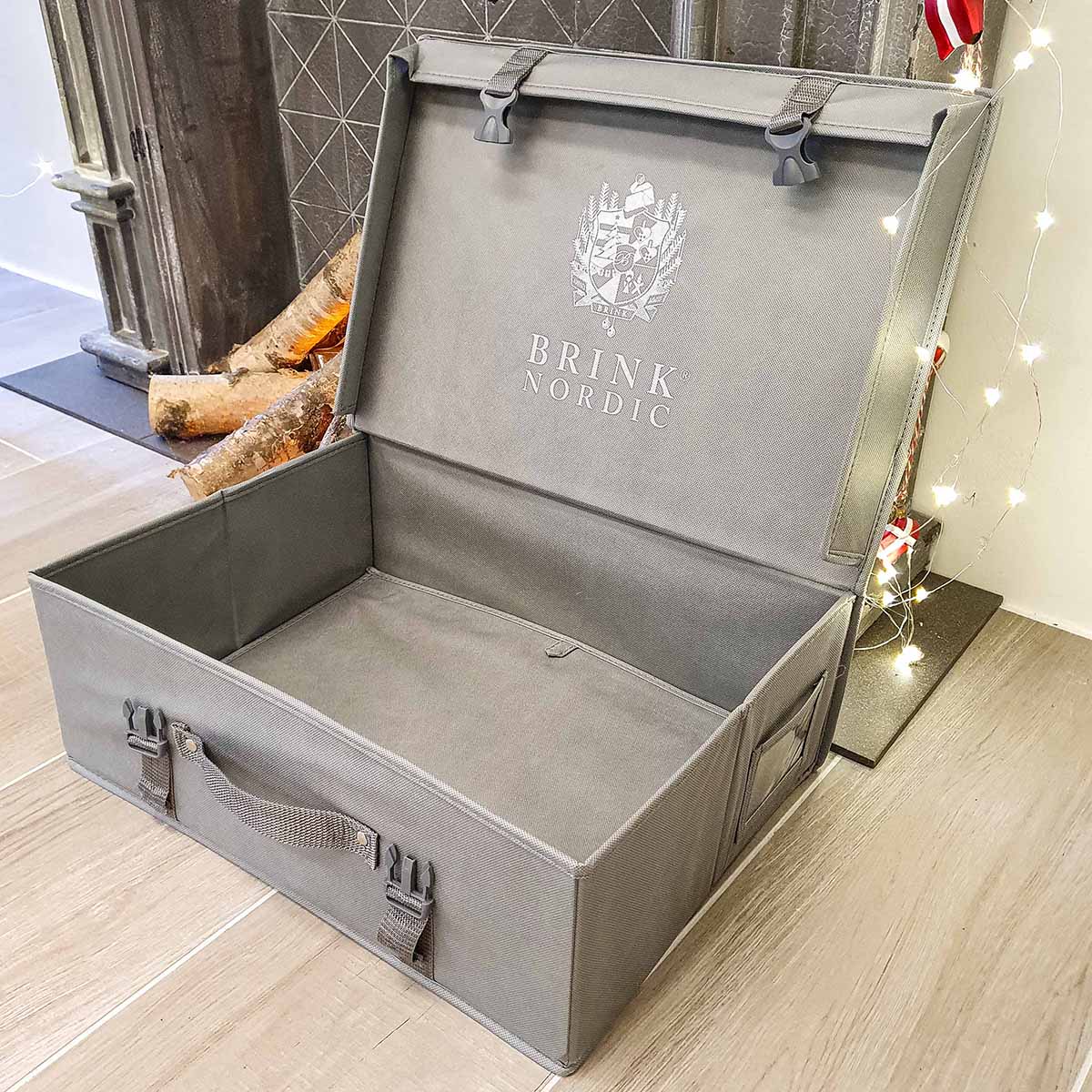 Kufferten er designet til at passe perfekt til de originale æsker fra Brink Nordic og giver optimal beskyttelse, når julepynten lægges på hylden. Den solide kuffert beskytter dine ornamenter mod støv og lys - og gør det let at holde styr på din samling år efter år.