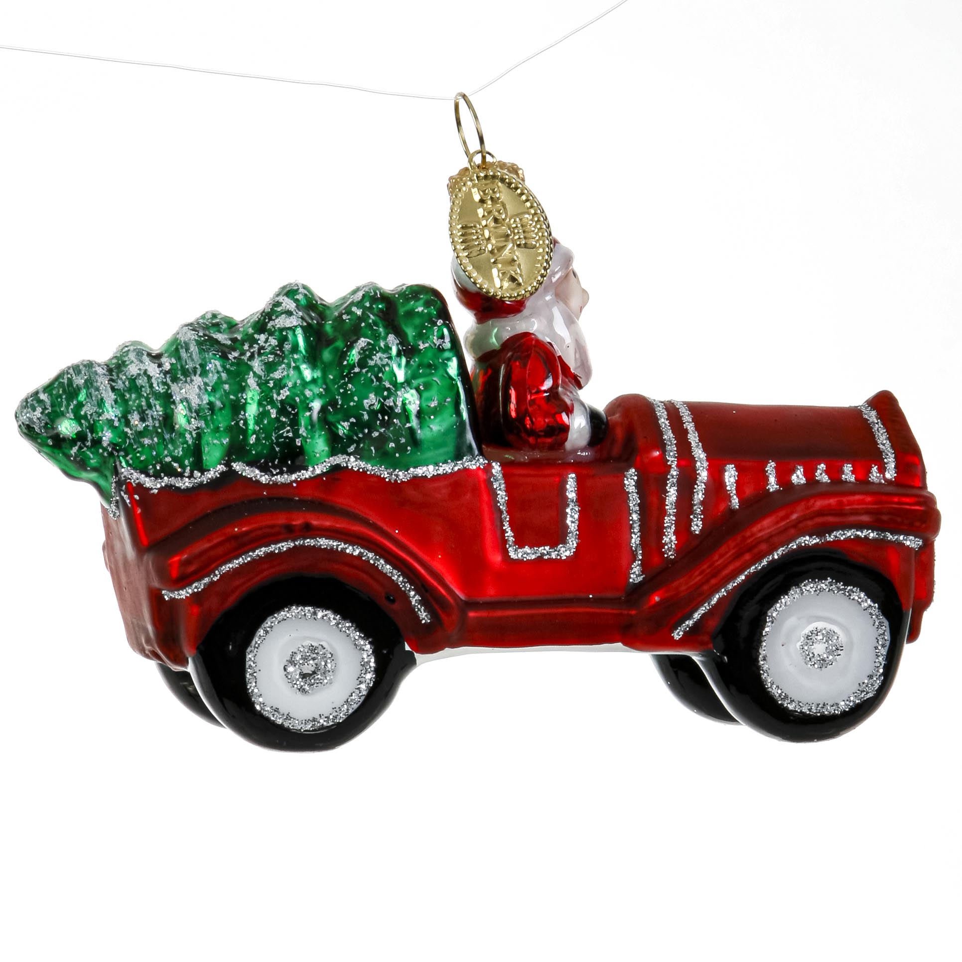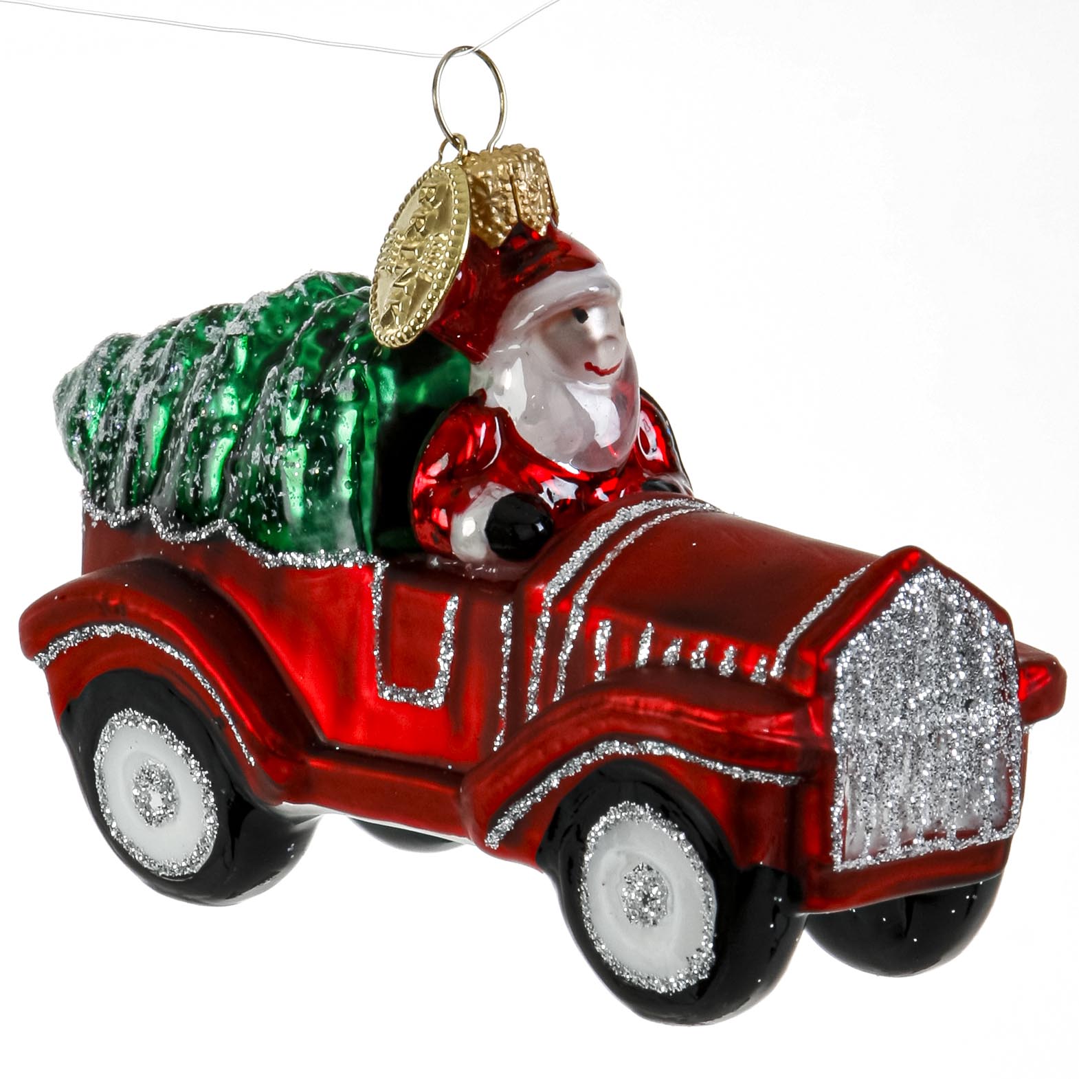 BIL MED NISSE OG JULETRÆ 9 CM RØD