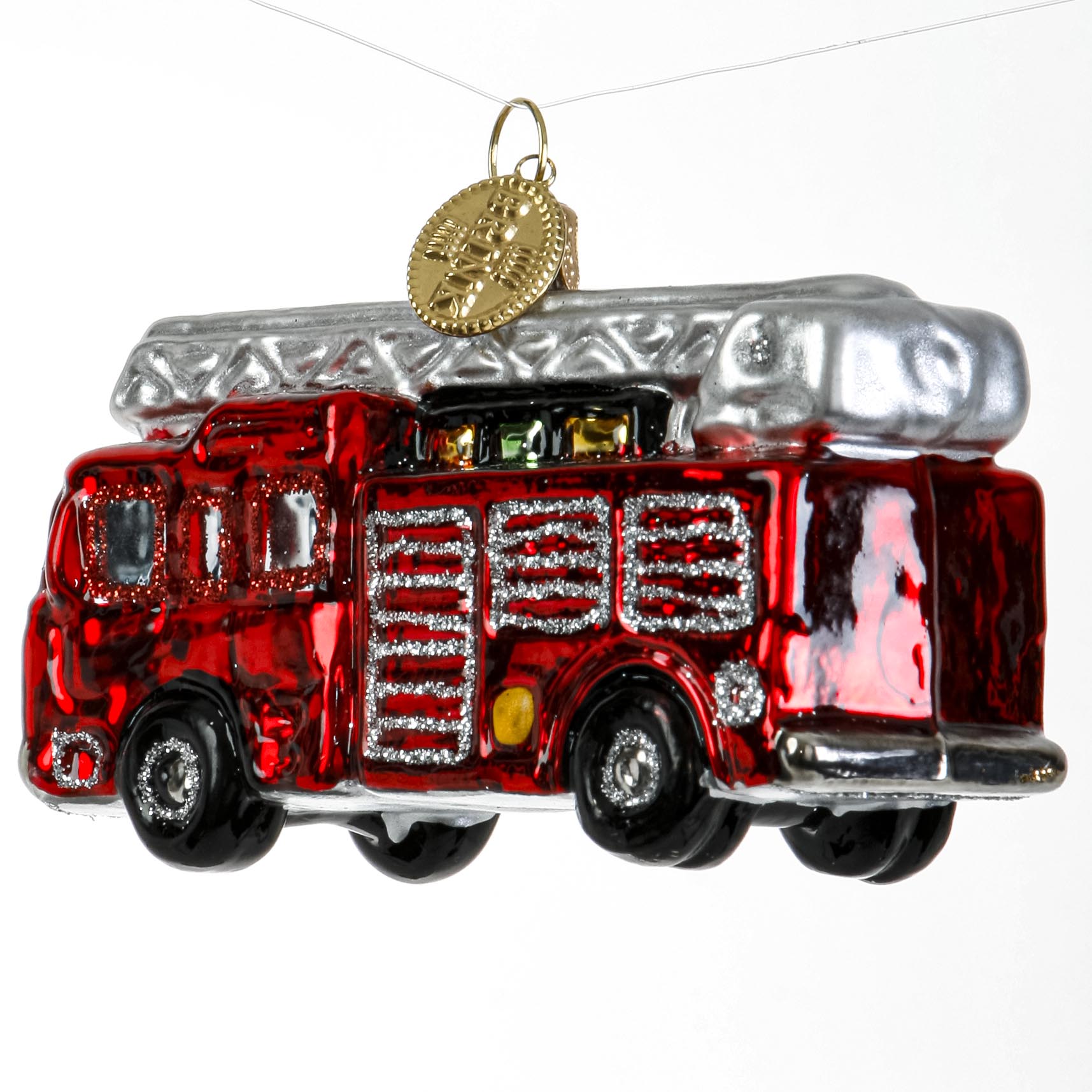 FLot stor brandbil. Mundblæst glaspynt til alle der holder af brandbiler.
