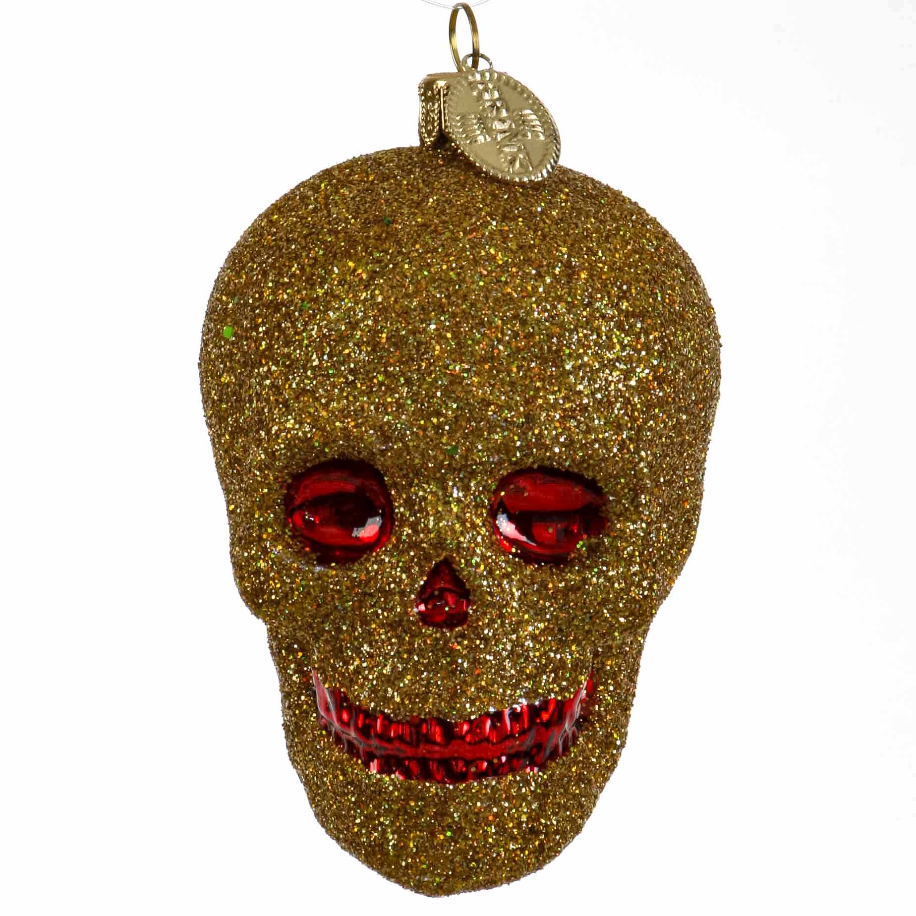 Halloween karnium medguldglimmer. Pynten til alle der holder af uhygge, kranium og halloween.