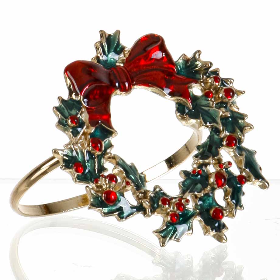 Servietring, 5 cm, med den fineste kirsttjørn julekrans.