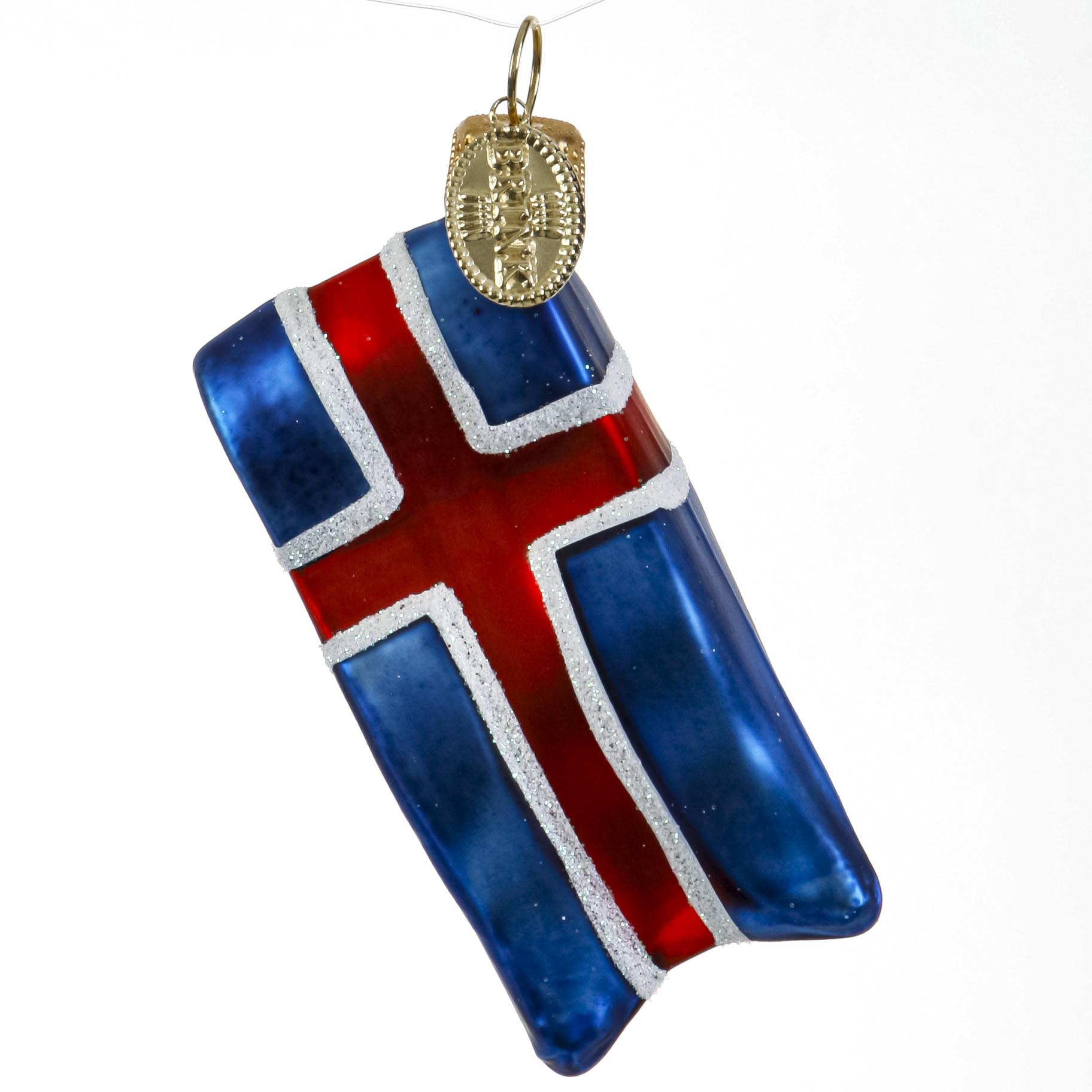 Juletræet er pyntet med flag fra den nordiske lande. Mange fine detaljer. Mundblæst og hånddekoreret.
