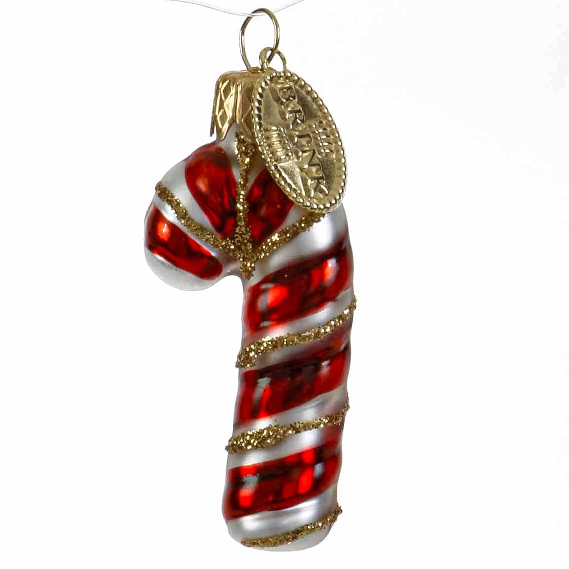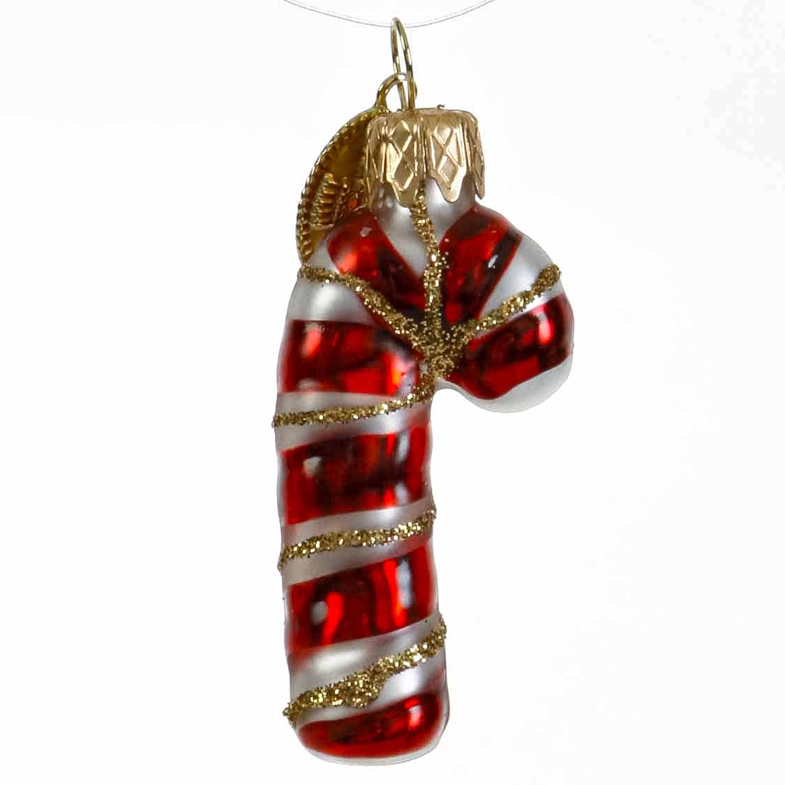 Sukkerstok i rød som julepynt. En fin stribet sukkerstok som juleornament til alle der holder af jul, slik og søde sager.