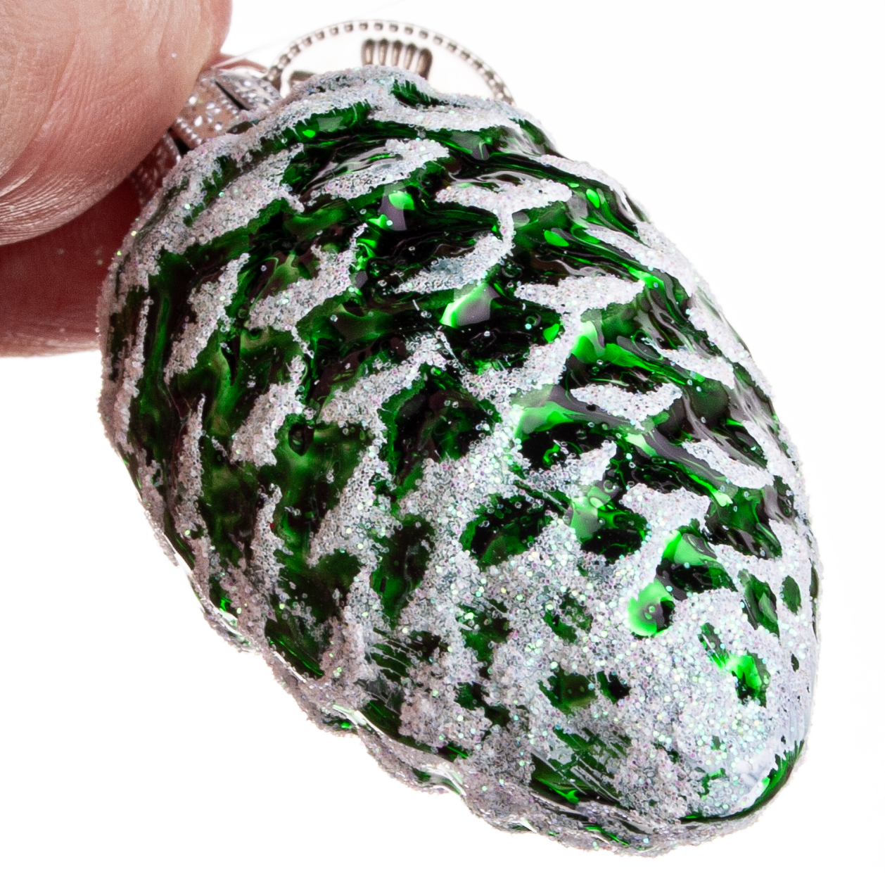 Brink Nordic kogle i grøn og hvid. Pynter smukt på træet eller i vores fyrfadsstager. Nostalgisk julepynt.